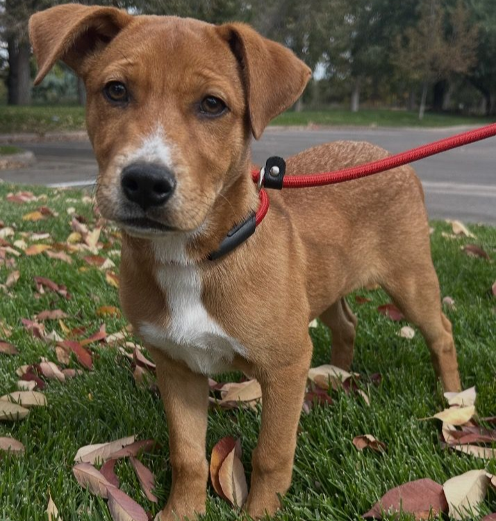 When my foster parents are at work, I hang out, nap, and play nicely with my foster sister. When they get home, I am ready to greet them with tail wags and love! I am learning that leash walks are pretty great — I do best walking with my confident foster brother, but I am still a bit shy on my own. I ride well in the car, sleep through the night in my kennel (it helps me with potty training), and I am this close to being fully potty trained. Once I get the hang of it, I would love to trade my kennel for a cozy spot snuggled up next to my humans in bed. I can be shy at first and like to take things at my own pace, but once I feel comfortable, my happy, goofy personality shines. I am growing braver every day and turning into the perfect little Colorado adventure buddy.