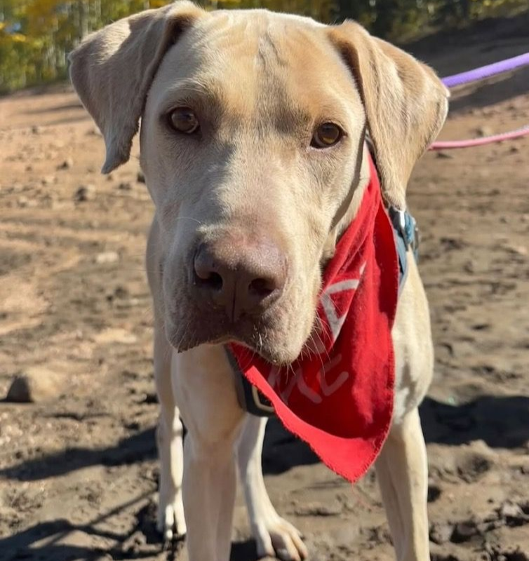 About: Hi friends! My name is Vooma, and I am a gorgeous yellow Lab mix with a heart as big as the Colorado sky! My start in life was a little bumpy — I had to have my tail amputated when I arrived at the shelter — but don’t worry, I’ve perfected the full-body wag! Trust me, when I’m happy (which is a lot), my whole backside joins the party. I recently spent a weekend on a “doggy day out” in a foster home, and let me tell you, I nailed it! I settled in right away, soaked up all the love, and showed my people just how sweet, gentle, and fun I can be. I’m smart, eager to please, and a total lovebug once I get to know you. I’m an active girl who loves adventures — hiking, playing fetch, rolling in the grass, or showing off my signature excited “tippy taps.” But after the fun, I’m all about curling up next to you for some well-deserved snuggle time. I also do great in a kennel and can keep myself busy with toys when you need some “me time.” Now, full disclosure: I prefer to be the one and only dog in the home. I like having my humans all to myself — what can I say? I’m a bit of a diva in the best possible way! I promise to give you more than enough love, laughter, and cuddles to make up for it. 💛